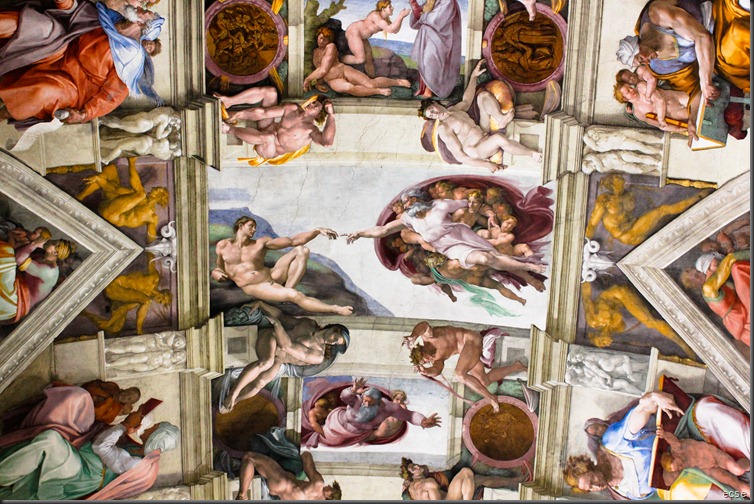 Another interesting fact. Michelangelo was mad at the Pope the whole time. Our guide pointed out to us the in the middle left side of the photo below, the painting of Michelangelo portraying God “mooning” the Pope as he was not happy about being forced into doing the Sistine Chapel.